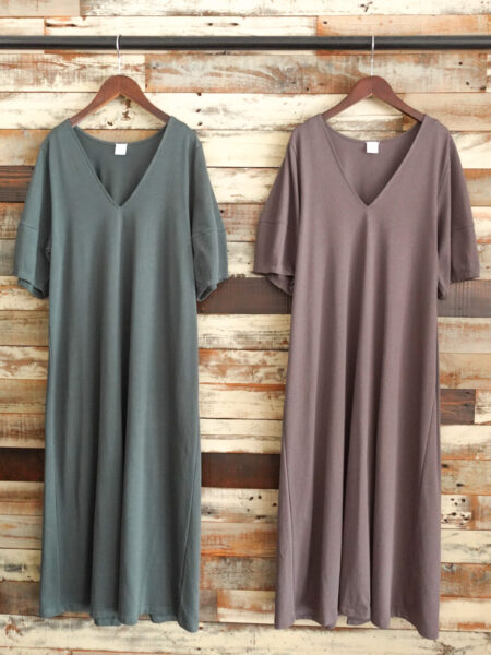 ★『袖ボリュームVネックワンピース』