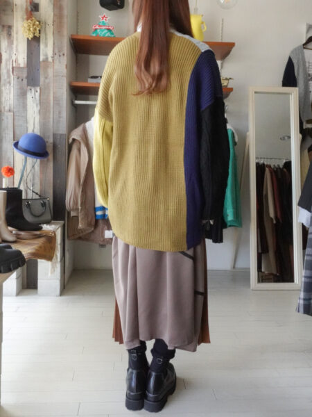 配色だけでなく右袖のみケーブルニットになっているのもポイント☆☆☆