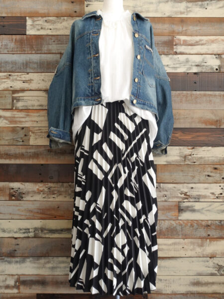 ◆『ジオメトリック柄プリーツスカート』アイボリー
