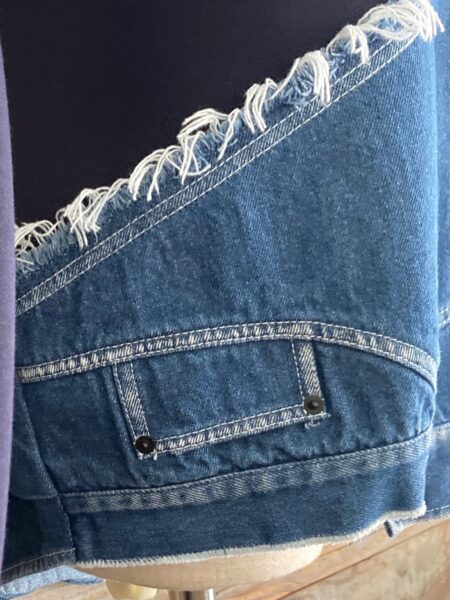 ダンボールニットとデニムの異素材をコンビネーションした、リメイク風デザインのトップス!