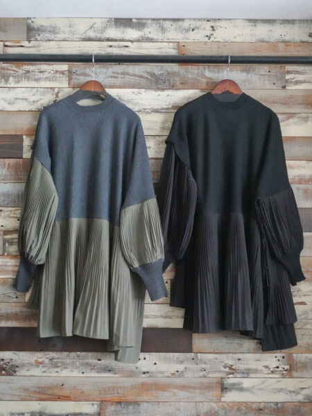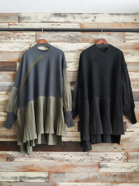 サイズ: 着丈 最短60cm/最長93cm/バスト104cm/裄丈78cm🆕★『プリーツ切替ニットプルオーバー』