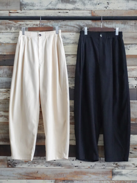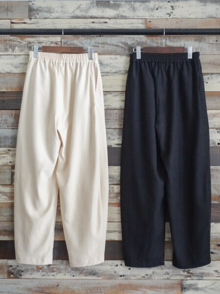 サイズ: 丈92cm/ウエスト64cm〜(ゴム仕様)/ヒップ114cm🆕★『タックカーブパンツ』