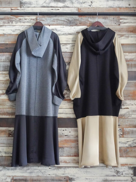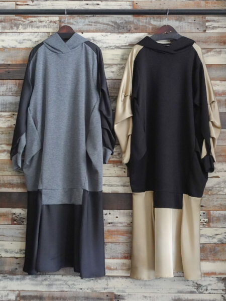 サイズ: 丈100cm/ウエスト646m〜(ゴム仕様)/ヒップ106cm🆕★『切替フレアーヘムフードワンピース』