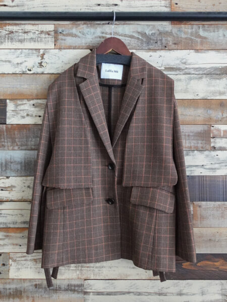 サイズ: 着丈 最短73cm/最長83cm/バスト136cm/裄丈 左81cm/右80cm🆕★『チェックジャケットセットベスト』