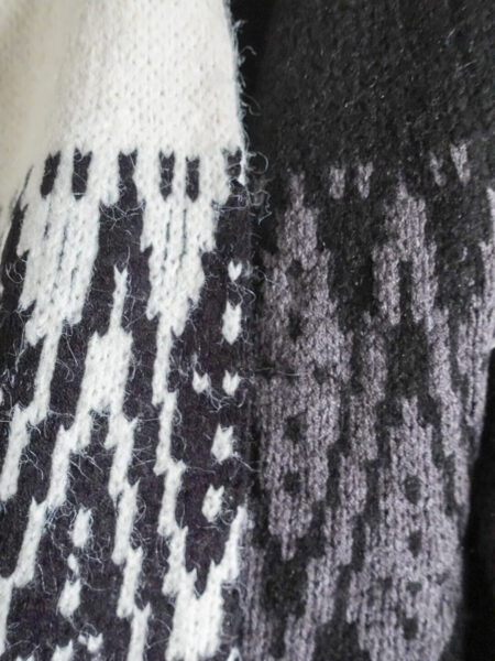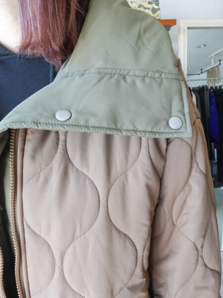 閉めるとハイネックになるスタンドネックが作れます。ひっくり返すと‥デザインが変わりキルティングに♪