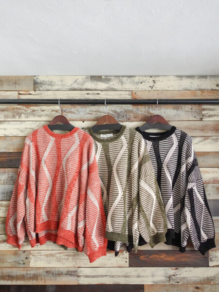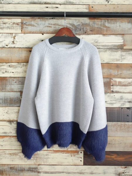 サイズ: 着丈58cm/バスト106cm/裄丈86cm🆕★『袖配色ニットプルオーバー』