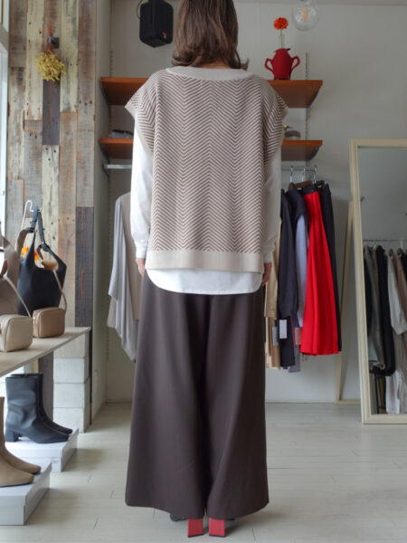 今日は、秋だからこそ楽しめるスタッフも購入したコチラ↓のニットベストを実際に着用したコーディネートをご紹介したいと思います。