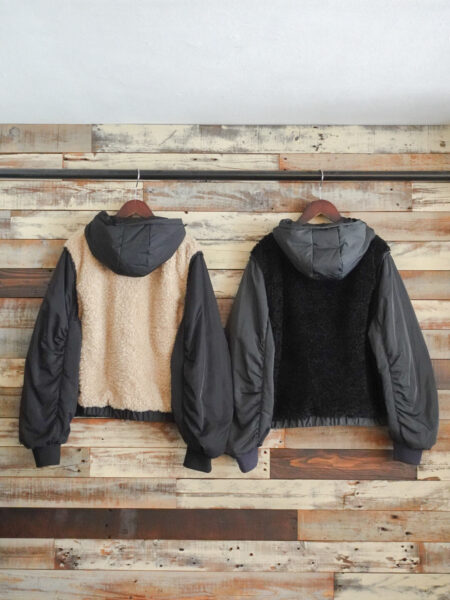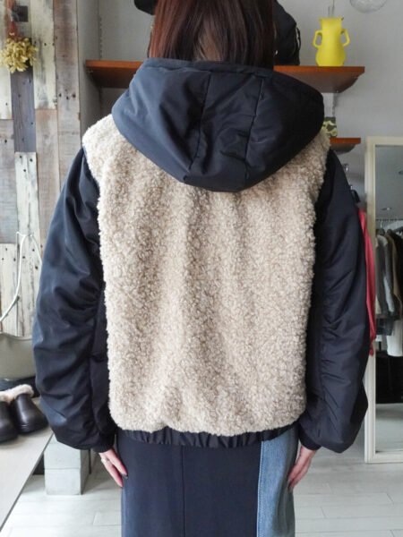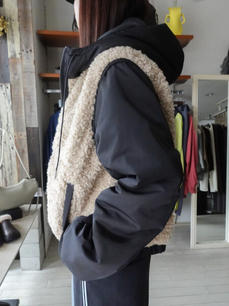 🆕★『ボア×ナイロンショートフード中綿ブルゾン』