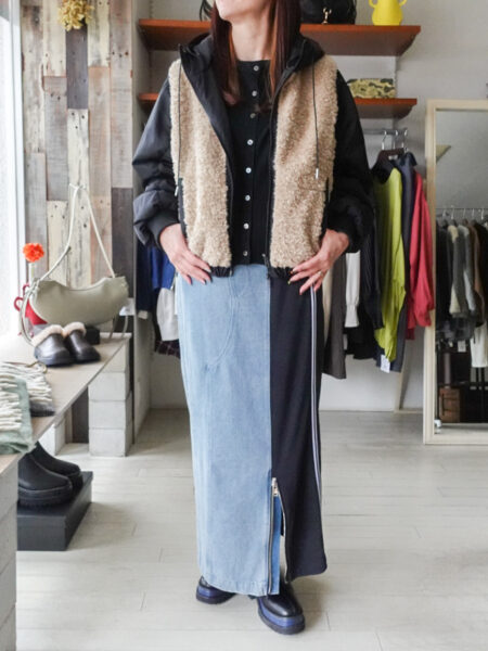 ボリューム感のあるシルエットながら、ショートフードでバランスよく着こなせます♪