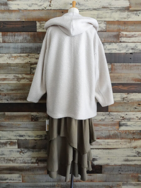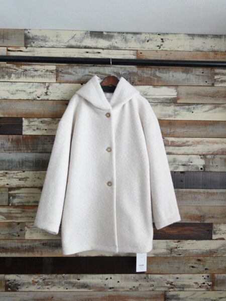 厚着になるこれからの時期にアイテムを選ばないゆったりとしたサイズ感のウールのような暖かみと膨らみのあるフーディーコート!!