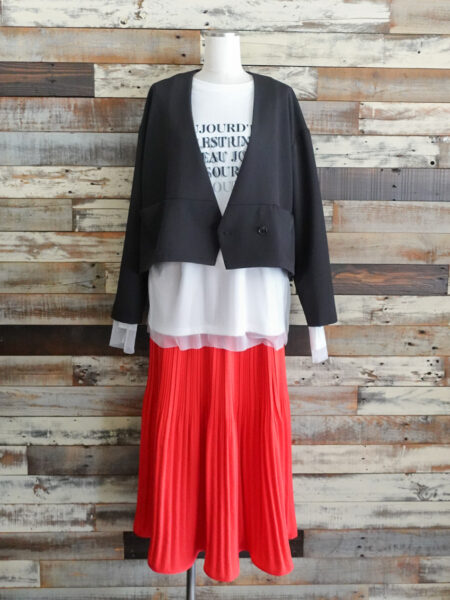 ◇ノーカラージャケットから覗くデザインインナーがスタイリングに程よいアクセントをプラス!!