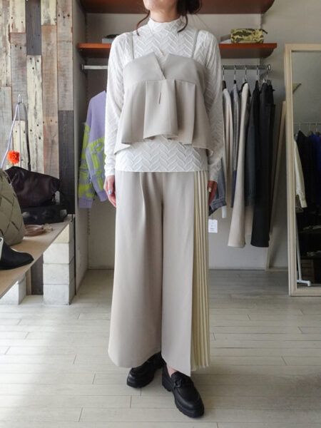 異素材切替の軽やかで春らしいオシャレさをプラスできる着回し力抜群のボトムス◎