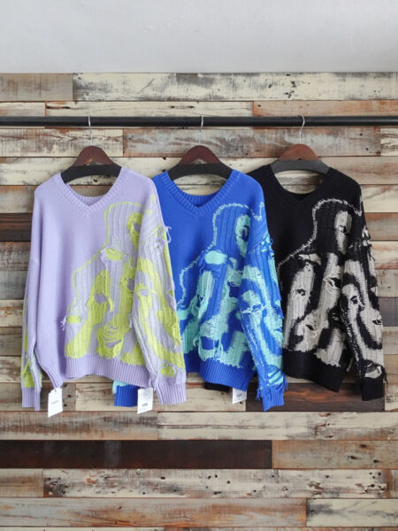 一枚で映える存在感のあるフリンジ配色オーバーニット!!