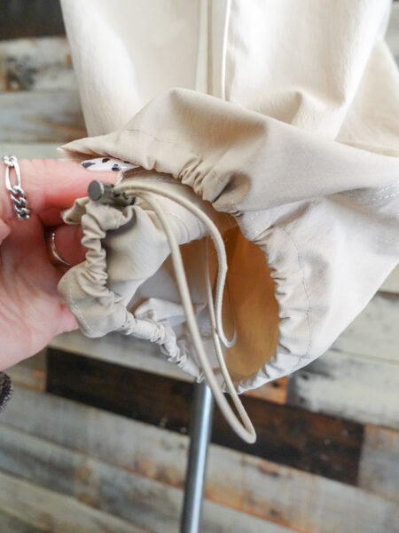 ストレートでも着用可能ですが、裾のドロストコードを絞ることでバルーンシルエットにも変形可能◎ おすすめのコーディネートはコチラ↓↓↓